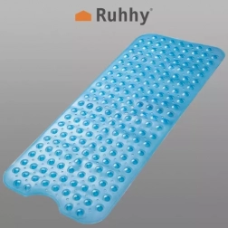 Veľkoformátová protišmyková podložka RUHHY zabezpečuje stabilný krok vo vani aj v sprche. Desiatky prísaviek po celej ploche pevne priľnú k hladkému dnu a zabránia nechcenému posunu. Textúrovaný povrch poskytuje spoľahlivú oporu vo vlhom prostredí a pomáha predchádzať pádom.