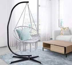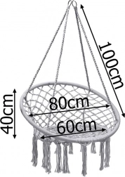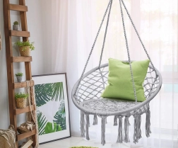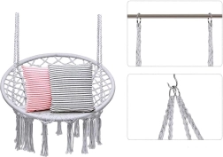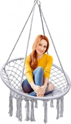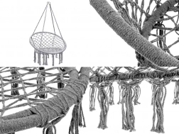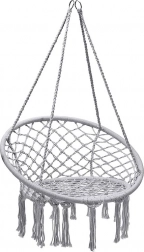 Objavte ľahkosť hojdania a útulné posedenie v závesnom kresle typu „bocianie hniezdo“. Elegantný macramé výplet, dekoratívne strapce a nadčasová sivá farba sa ľahko zladia s moderným aj prírodným štýlom. Kreslo je ideálne na oddych s knihou, krátke zdriemnutie aj pokojnú relaxáciu na čerstvom vzduchu.