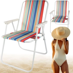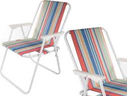 Ľahká skladacia plážová stolička s farebnými pruhmi ponúka pohodlné sedenie pri vode, na záhrade aj v kempe. Robustný oceľový rám a odolná tkanina zabezpečia stabilitu, zatiaľ čo kompaktné ploché zloženie šetrí miesto pri preprave aj skladovaní. Ideálna na pláž, kempovanie, piknik aj balkón.