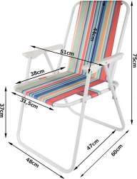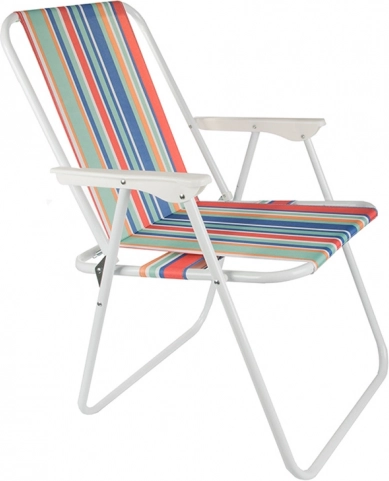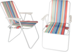 Stolička sa rozkladá bez náradia – stačí ju otvoriť a pohodlné sedenie s opierkami rúk je pripravené. Univerzálny pruhovaný vzhľad dodá letnú atmosféru vášmu kempovaniu, rybárčeniu, pikniku aj oddychu na balkóne.