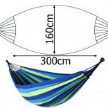 Dvojmiestna hojdacia sieť je ideálna na oddych v záhrade alebo na terase. Vyrobená z odolného materiálu, poskytuje pohodlie a uvoľnenie pre všetkých, ktorí radi trávia voľný čas v prírode.