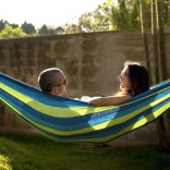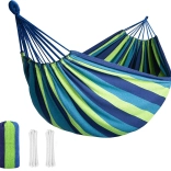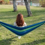 Dvojmiestna hojdacia sieť je perfektný doplnok pre každého, kto si chce užiť chvíle pohody na čerstvom vzduchu. Je vyrobená z odolnej bavlny s prímesou polyesteru, takže zabezpečuje dlhú životnosť a pohodlné používanie. Vďaka priloženým lanám ju ľahko upevníte medzi stromy alebo stĺpiky a môžete ihneď relaxovať.