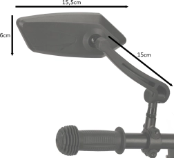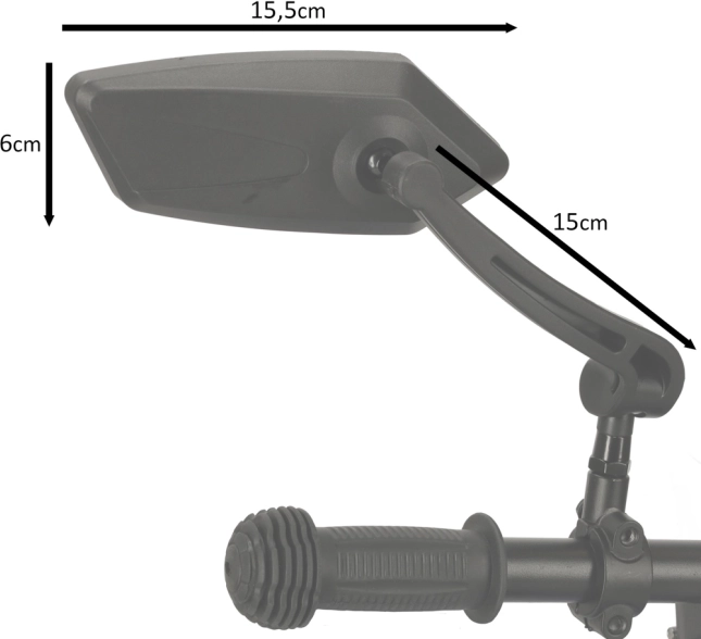 Zrkadlá majú dĺžku ramena 15 cm, čo umožňuje široký výhľad, a ich rozmery sú 15,5 cm x 6 cm. Vysokokvalitné plastové spracovanie zaisťuje ich dlhú životnosť.