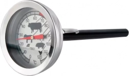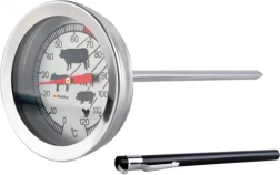 Teplomer obsahuje symboly pre optimálne teploty rôznych druhov mäsa a čitateľný ciferník.