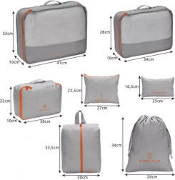 Naša sada cestovných organizérov umožňuje maximálnu efektívnosť pri balení. Využite sedem rôzne veľkých a navrhnutých tašiek na usporiadanie spodnej bielizne, obuvi, kozmetiky alebo elektroniky.
