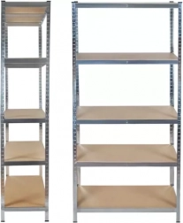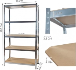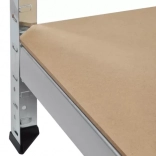 Stabilný regál z pozinkovanej ocele a hrubých MDF políc zvládne vysoké zaťaženie a každodennú prevádzku. Každá polica je vystužená priečkou pre vyššiu stabilitu, gumové koncovky na nohách chránia podlahu a bránia kĺzaniu. Vďaka otvorom po 3 cm ľahko nastavíte výšku políc presne podľa uložených vecí.