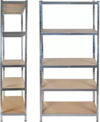 - 875 KG - maximálne zaťaženie jednej police je 175 kg! To v súčte predstavuje 875 kg – bez problémov doň uložíte rôzne vybavenie alebo množstvo ďalších výrobkov. Regál je ideálny do miestností, ako je pivnica, garáž, sklad alebo obchod. Vyrobený z pozinkovanej ocele a 4 mm silnej MDF dosky, regál má tiež priečnik, ktorý zvyšuje jeho stabilitu a pevnosť a zaručuje dlhoročné používanie a úplnú spokojnosť s výrobkom.