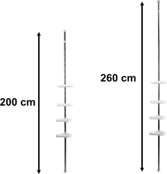 Nastaviteľná teleskopická rohová polica do sprchy 260 cm je ideálnym riešením pre vašu kúpeľňu, ak vám chýba dostatok úložného priestoru na kozmetiku a ďalšie potreby. Táto polica ponúka štýlový a moderný spôsob, ako udržať vašu kúpeľňu organizovanú.