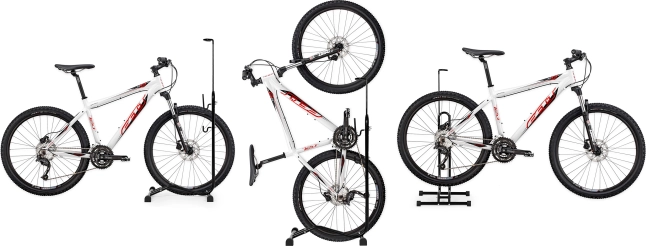 Stojan na bicykel 3v1 zabezpečuje stabilné a bezpečné uloženie vašich bicyklov v prostredí garáže, pivnice alebo dokonca na záhrade. Jeho univerzálny dizajn a antikorózny povrch z neho robia nevyhnutnú súčasť vybavenia každého cyklistu.