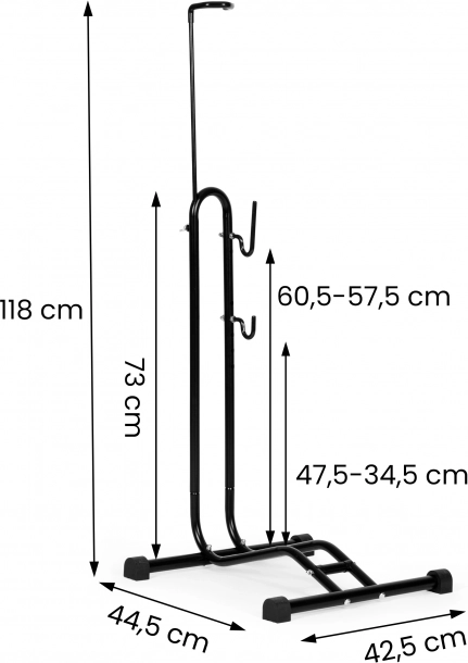 Špeciálne nastaviteľné držiaky stojanu prispôsobia jeho rozmery mestským, horským aj cestným bicyklom. Držiaky sú vybavené mäkkým materiálom, ktorý chráni rám bicykla pred poškriabaním.