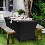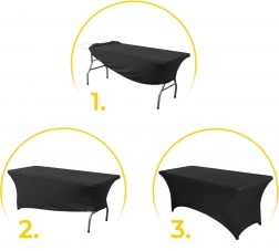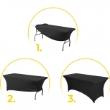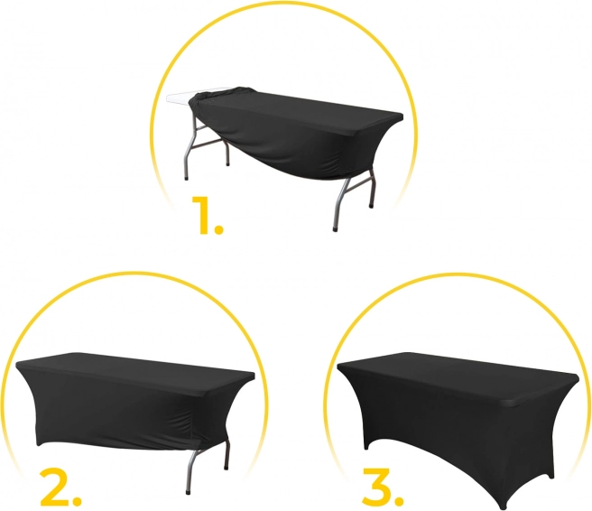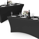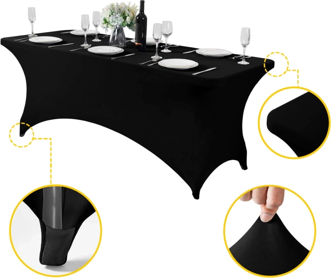 Elastická zmes polyesteru a spandexu sa prispôsobí stolom 180 cm a vytvorí hladký, bezchybný povrch bez záhybov aj bez žehlenia.