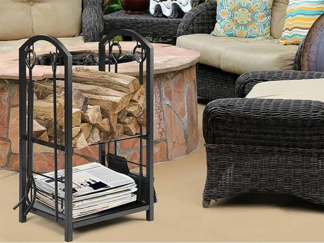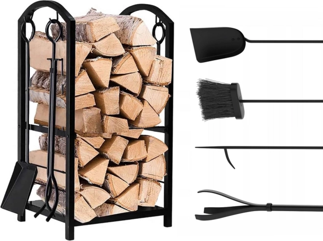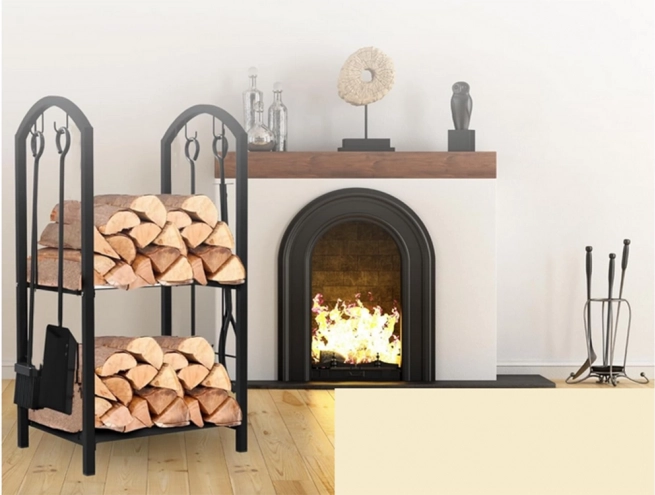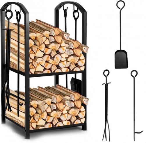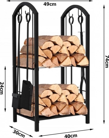 Stojan obsahuje dve poschodia pre maximálne využitie priestoru, kde môžete umiestniť drevo alebo iné krbové príslušenstvo.