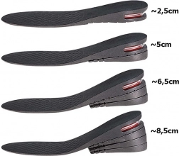 Nastaviteľné vložky do topánok sú navrhnuté pre tých, ktorí túžia po extra výške a zároveň po pohodlí. Vyrobené z mäkkého materiálu s vzduchovým vankúšom, tieto vložky chránia vašu chrbticu, kolená a kĺby. Cítite sa pohodlne a sebavedome kdekoľvek idete.