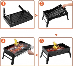 Užite si bezstarostné grilovanie s týmto prenosným skladacím grilom. Jeho kompaktný dizajn, ktorý sa ľahko zloží do kufríka, umožňuje jednoduchú prepravu a úsporu miesta. Kvalitné materiály zaručujú odolnosť voči poveternostným vplyvom, takže je vhodný pre celoročné použitie.