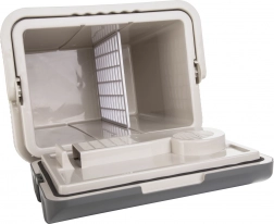 Chladnička je dodávaná s pohodlnou rukoväťou a výklopným vekom na pántoch, čo uľahčuje prístup k uskladneným položkám. Izolačná technológia z PU a 21 mm hrúbka stien zabezpečujú dlhodobé uchovanie teploty potravín.
