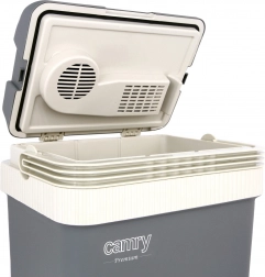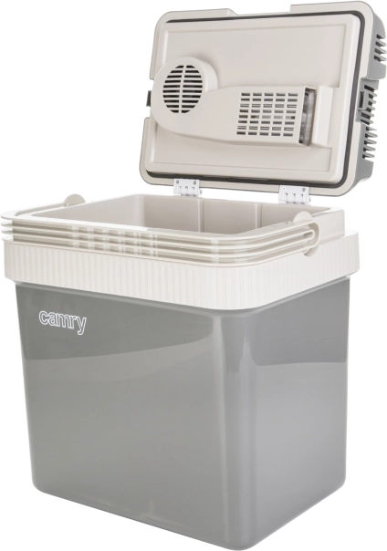 Táto kompaktná a efektívna chladnička značky Camry sa vďaka svojej ľahkej a odolnej plastovej konštrukcii ľahko prenáša. Je vybavená pokročilým chladiacim systémom využívajúcim Peltierov článok, ktorý udržiava teplotu v chladenej komore stabilne o 12–14 °C nižšiu či vyššiu než teplota okolia. Funkcia ohrevu potom dokáže udržiavať teplotu okolo 60–65 °C.
