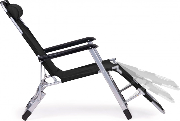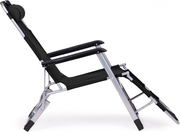 Ergonómiu podporuje mäkký podhlavník pre krk a hlavu, 3-polohová opierka nôh a praktické podrúčky. Protišmykové nožičky chránia povrch pred poškriabaním a zvyšujú stabilitu pri oddychu aj opaľovaní.