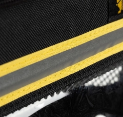 Polstrované ramenné popruhy, nastaviteľný hrudný popruh a široký bedrový pás stabilizujú batoh a rovnomerne rozkladajú záťaž.