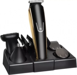 - hlava na strihanie vlasov, hlava na zastrihávanie fúzov, hlava na fúzik, zastrihávač nosa a uší, holiaci nadstavec, 5 vodiacich hrebeňov, stojan, nabíjací kábel, čistiaca kefka, olej, krabička s návodom