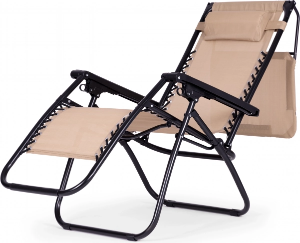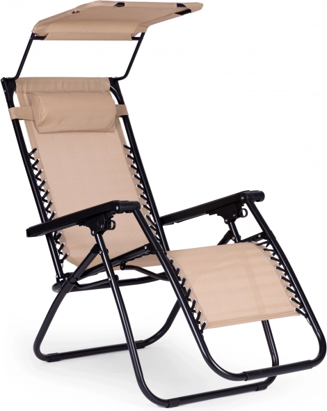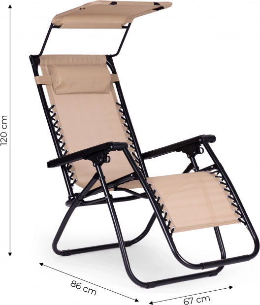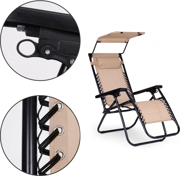 Užite si relax na záhrade, terase aj na pláži s týmto pohodlným ležadlom v štýlovej béžovej farbe. Ponúka plynulé polohovanie až do polohy bez tiaže, nastaviteľnú slnečnú striešku, mäkký podhlavník a skladaciu konštrukciu pre jednoduché prenášanie. Odolný oceľový rám s protišmykovými koncovkami a vodoodolná textília zaručujú komfort aj dlhú životnosť. Maximálna nosnosť 120 kg.