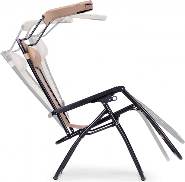 Záhradné polohovateľné ležadlo s nastaviteľnou strieškou, béžové