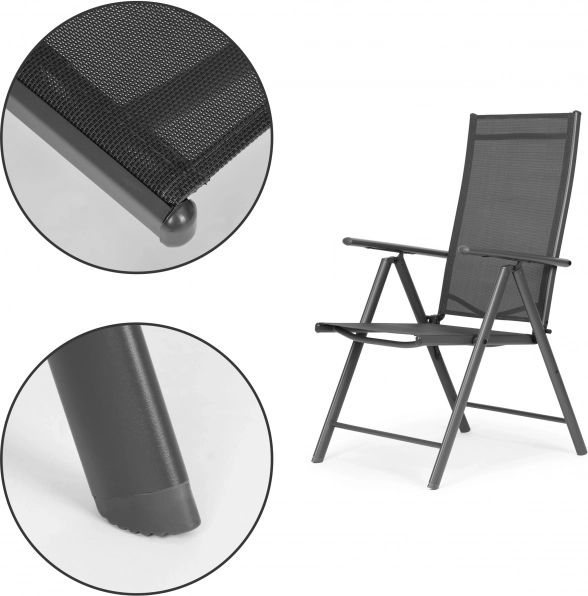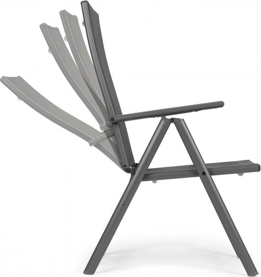 Užite si relax vonku kedykoľvek chcete. Tieto skladacie stoličky so 7 stupňami polohovania operadla vám umožnia zvoliť ideálnu pozíciu – od vzpriameného sedenia pri stole až po pohodové leňošenie s knihou. Pevný, práškovo lakovaný oceľový rám zaručuje stabilitu a dlhú životnosť, zatiaľ čo textilén sa prispôsobí telu a výborne vetrá.