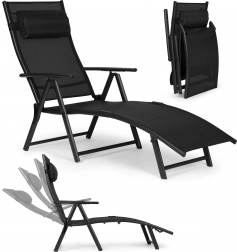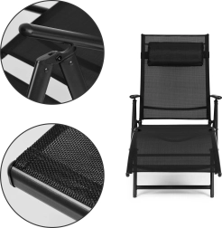 Štýlové čierne ležadlo MULTIGARDEN je navrhnuté pre komfortný relax na záhrade, terase aj pri bazéne. Priedušná textilná sieťovina sa prispôsobí telu a zabezpečuje výborné vetranie, zatiaľ čo pevný oceľový rám s práškovou úpravou poskytuje stabilitu a dlhú životnosť. Súčasťou je mäkký odnímateľný podhlavník pre ešte príjemnejší oddych.
