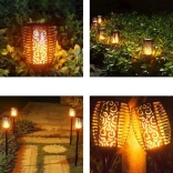 Solárne lampy v tvare pochodní kombinujú elegantný výrezový dizajn s LED efektom prirodzeného plameňa, ktorý vytvára útulné a bezpečné osvetlenie bez otvoreného ohňa. Integrovaný solárny panel počas dňa nabíja vstavanú batériu a po zotmení sa svetlá automaticky rozsvietia.