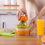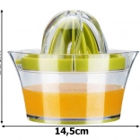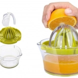 Tento kompaktný odšťavovač citrusov kombinuje priehľadnú nádobu s odmerkou a efektívny lis s hrotmi pre maximálnu výťažnosť šťavy. Priložené sitko spoľahlivo zachytí kôstky aj dužinu, takže získate čistú, sviežu šťavu pripravenú na servírovanie do nápojov, koktailov či receptov.