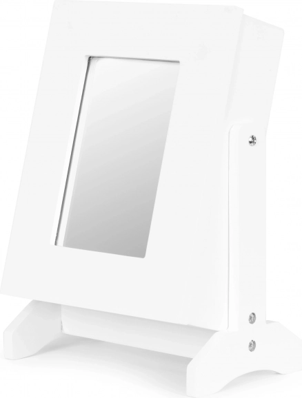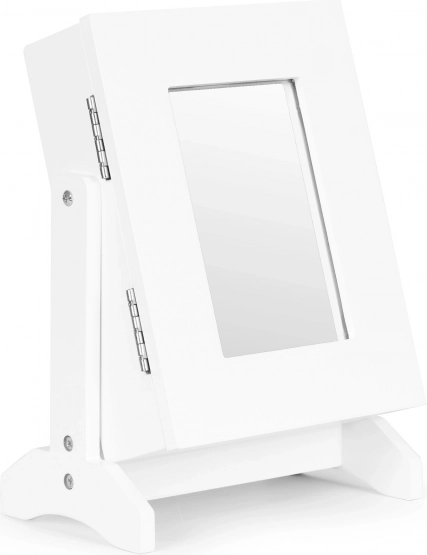 Objavte praktickú šperkovnicu, ktorá spája dizajn a funkčnosť. Kompaktné rozmery umožnia umiestnenie na komodu v spálni, do kúpeľne či šatníka, zatiaľ čo biele matné prevedenie ľahko zapadne do moderného interiéru. Vonkajšie zrkadlo poslúži pri skúšaní šperkov aj rýchlom nalíčení.