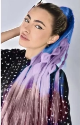 Kombinácia modrej, fialovej a ružovej s jemnými trblietavými prameňmi okamžite rozžiari každý účes a dodá mu jedinečný charakter.
