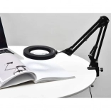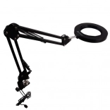 Lampa s lupou IZOXIS kombinuje moderný dizajn, flexibilné ramená a kvalitnú optiku pre precíznu detailnú prácu. Kruhový LED prstenec rovnomerne osvetľuje plochu okolo šošovky a zvyšuje kontrast aj čitateľnosť detailov bez únavy očí. Kovový zverákový clamp so skrutkou drží lampu pevne na doske stola až do hrúbky 5 cm.