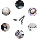 Praktická stolná lampa s lupou IZOXIS ponúka jasné kruhové LED osvetlenie, stabilné uchytenie na stôl a sklenenú optickú šošovku pre presnú prácu bez skreslenia. Vďaka 10 úrovniam jasu a 3 farebným teplotám svetla (teplá, neutrálná, studená) si ľahko prispôsobíte osvetlenie pre kozmetiku, modelárstvo, čítanie aj jemné remeslo. Napájanie cez USB a ovládač na kábli zabezpečujú maximálne pohodlie.