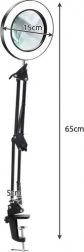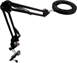 Lampa s lupou IZOXIS kombinuje moderný dizajn, flexibilné ramená a kvalitnú optiku pre precíznu detailnú prácu. Kruhový LED prstenec rovnomerne osvetľuje plochu okolo šošovky a zvyšuje kontrast aj čitateľnosť detailov bez únavy očí. Kovový zverákový clamp so skrutkou drží lampu pevne na doske stola až do hrúbky 5 cm.