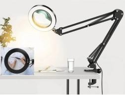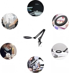 Praktická stolná lampa s lupou IZOXIS ponúka jasné kruhové LED osvetlenie, stabilné uchytenie na stôl a sklenenú optickú šošovku pre presnú prácu bez skreslenia. Vďaka 10 úrovniam jasu a 3 farebným teplotám svetla (teplá, neutrálná, studená) si ľahko prispôsobíte osvetlenie pre kozmetiku, modelárstvo, čítanie aj jemné remeslo. Napájanie cez USB a ovládač na kábli zabezpečujú maximálne pohodlie.