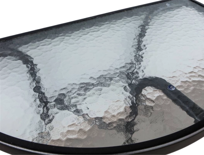 Stabilná doska z tvrdeného skla je odolná proti poškriabaniu a ľahko sa čistí. Tvar polmesiaca šetrí cenný priestor na balkóne.