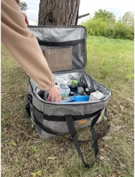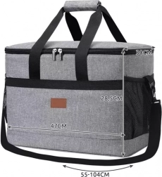 Pre maximálny komfort nosenia má taška pevné úchyty so spojkou na suchý zips a odnímateľný nastaviteľný popruh (55–104 cm). Dvojcestný zips uľahčí prístup, bočné sieťované vrecká a predné vrecko pojmú drobnosti. Dva priložené chladiace akumulátory stačí zmraziť a predĺžia dobu chladenia vo vnútri tašky.