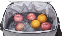 Sivá termotaška s kapacitou 20 l je ideálna na výlety, pikniky, k vode aj na nákupy mrazených potravín. Vonkajší materiál z tkaniny Oxford je odolný a vodoodolný, vnútornú časť tvorí termoizolačná fólia a silné steny s EVA penou, ktoré účinne stabilizujú teplotu obsahu. Interiér je hygienický, neabsorbuje pachy a veľmi ľahko sa udržiava.