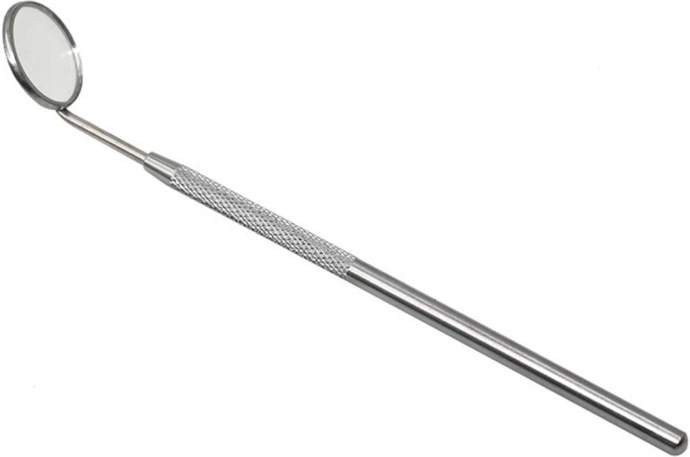 Profesionálne zubné zrkadlo. Nevyhnutná výbava každého zubára. Vyrobené z robustnej nehrdzavejúcej ocele. Dlhá rukoväť s hrubým úchopom pre jednoduché manévrovanie pri práci. Vymeniteľné zväčšovacie zrkadielko umožňuje presný prehľad o stave úst a zubov.