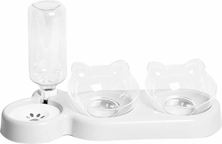 Automatický dávkovač vody a podmiska na krmivo pre mačky. Sklon misky o 15 stupňov uľahčuje nášmu miláčikovi prijímanie potravy. Fľaša na vodu s objemom 0,5 l umožňuje, aby mal váš miláčik neustále k dispozícii čerstvú vodu. Vďaka špeciálnemu ventilu zariadenie automaticky dopĺňa vodu z nádrže do misky. Kompaktný dizajn sa bude dobre vynímať v malých kuchyniach a chodbách.