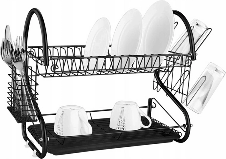 Praktický dvojposchodový odkvapkávač na riad vyrobený z chrómovaných drôtov a rúrok, ktorý skvele poslúži v každej kuchyni. Tento odkvapkávač dokáže pojať až 15 tanierov na hornej úrovni, zatiaľ čo na spodnej úrovni nájdete miesto na poháre a hrnčeky. Je nesmierne priestranný a navyše je vybavený niekoľkými demontovateľnými prvkami, ktoré zvyšujú jeho použiteľnosť.