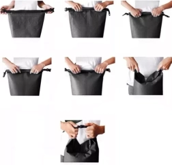 Praktický roll-top uzáver s prackou zaručí rýchle utesnenie a zároveň umožní pripnutie vaku k lodi či batohu. Nastaviteľný popruh (55–105 cm) uľahčuje nosenie cez rameno. Jednoduchá údržba – stačí utrieť.