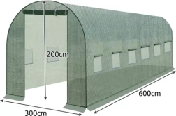 Pevná a v ťahu odolná fólia je vyrobená z PE s vloženou sieťovinou. Je určená pre záhradný tunel s rozmermi 6 x 3 x 2 m. Jej montáž je veľmi jednoduchá, fóliový kryt je potrebné čo najužšie pripevniť k oceľovému rámu, čím sa eliminujú negatívne účinky silného vetra, dažďa a slnka. Fólia pre tunel má dva pevné zipsy. Vchod je možné aj vyhrnúť a upevniť pomocou karabíny. Bočné okná sú vybavené sieťkou proti hmyzu, ktorá zabezpečuje správnu vlhkosť a cirkuláciu vzduchu v tuneli. Bočnú prírubu na stabilizáciu je potrebné zasypať zeminou alebo zaťažiť kameňmi. Tým bude tunel chránený pred vetrom, ktorý fóliu nadúva. Záhradnícky fóliový tunel predlžuje vegetačné obdobie zeleniny od predjari do neskorej jesene. Poskytuje vynikajúce výsledky pri pestovaní teplomilnej zeleniny, ako sú paradajky. Praktické a cenovo výhodné riešenie na použitie v domácich záhradách.
