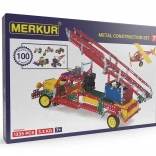 MERKUR 7 je robustná klasická kovová stavebnica, ktorá ponúka univerzálnu sadu dielov doplnenú o špeciálne komponenty na stavbu veľkého požiarnického auta, veľkých žeriavov a mnohých ďalších funkčných modelov. Vďaka prehľadnej návodovej knižke postavíte krok za krokom desiatky atraktívnych konštrukcií.