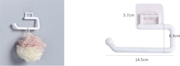 Praktický samolepiaci držiak na toaletný papier v elegantnej bielej farbe s dĺžkou 14,5 cm. Ponúka montáž bez vŕtania, spoľahlivé držanie a vhodnosť do vlhkého prostredia – ideálne do každej kúpeľne a WC.