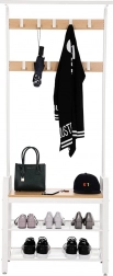 Vešiak ponúka 9 háčikov na zavesenie oblečenia a doplnkov a dve police na topánky pre organizáciu predsiene.