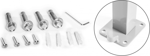Nástenná a do podlahy; súčasťou balenia sú expanzné skrutky a hmoždinky