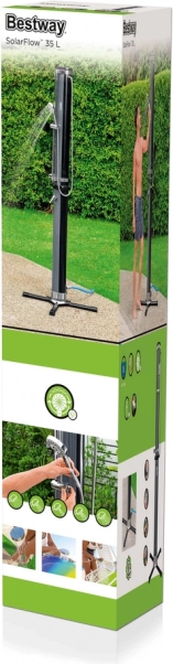 Užite si komfort teplej vody na záhrade vďaka solárnej záhradnej sprche BESTWAY so zásobníkom 35 l. Ľahko ju pripojíte k záhradnej hadici, má nastaviteľnú hlavicu aj páku na reguláciu prietoku a teploty. Stabilná základňa a odolné materiály zaručujú dlhú životnosť a pohodlné používanie pri bazéne aj po športe.