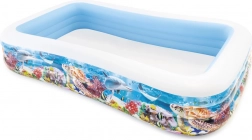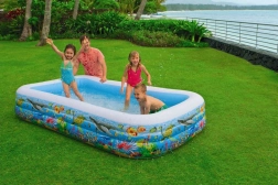 Užite si spolu s deťmi vodné radovánky priamo na vašej záhrade! Nafukovací bazén s motívom podmorského sveta poskytuje dostatok miesta pre celú rodinu. 3 vzduchové komory vyrobené z kvalitného vinylu s hrúbkou 0,33 mm vypúšťací ventil súčasťou je opravná sada Objem vody: 1020 l Rozmery: 305 x 183 x 56 cm