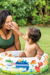 Nafukovací bazénik Intex s roztomilými dinosaurami je ideálny pre prvé vodné radovánky detí od 1 do 3 rokov. Vďaka priemeru 61 cm a výške 22 cm sa zmestí takmer kamkoľvek a poskytne bezpečnú a plytkú zónu na hranie a osvieženie v horúcich dňoch.